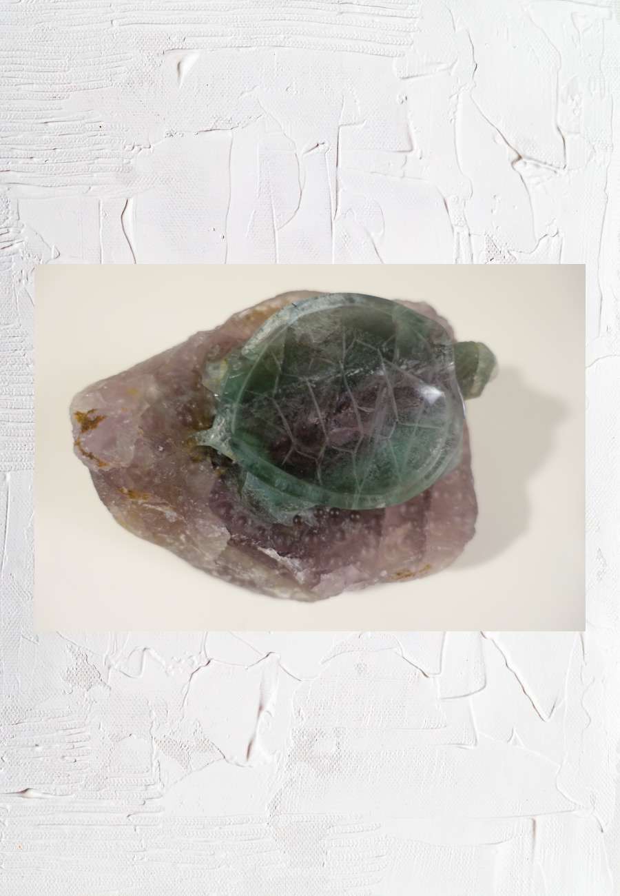 Fluorit aus einem Block, transparent, nur die Schildkröte ist plastisch herausgearbeitet, Größe 11 cm.