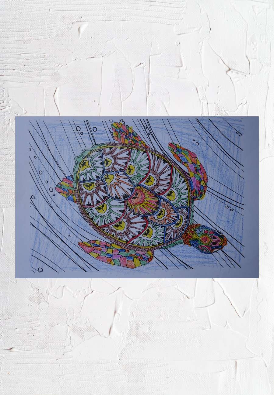 Vorlage, mit Buntstiften sorgfältig ausgemalt, Format DIN A 4, Alter 8 Jahre.