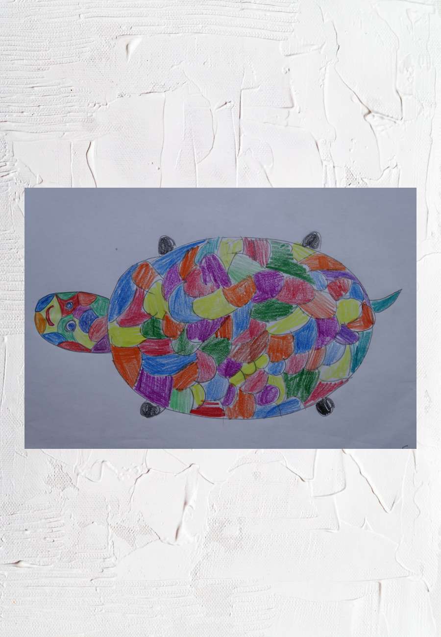Bleistift und Farbstifte, Format DIN A 4, Alter 8 Jahre.