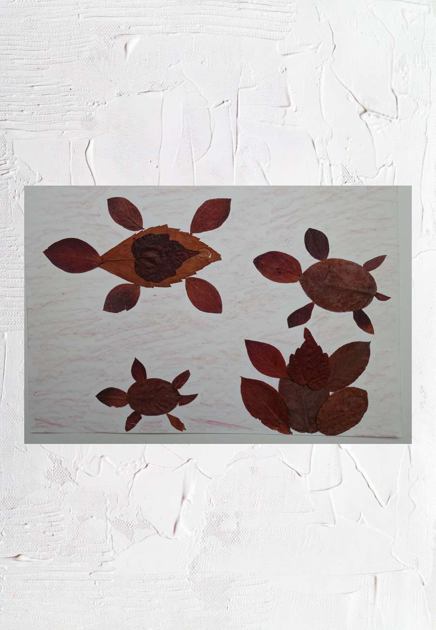 Collage aus selbst gepressten Blättern, Format DIN A 4, Alter 10 Jahre.