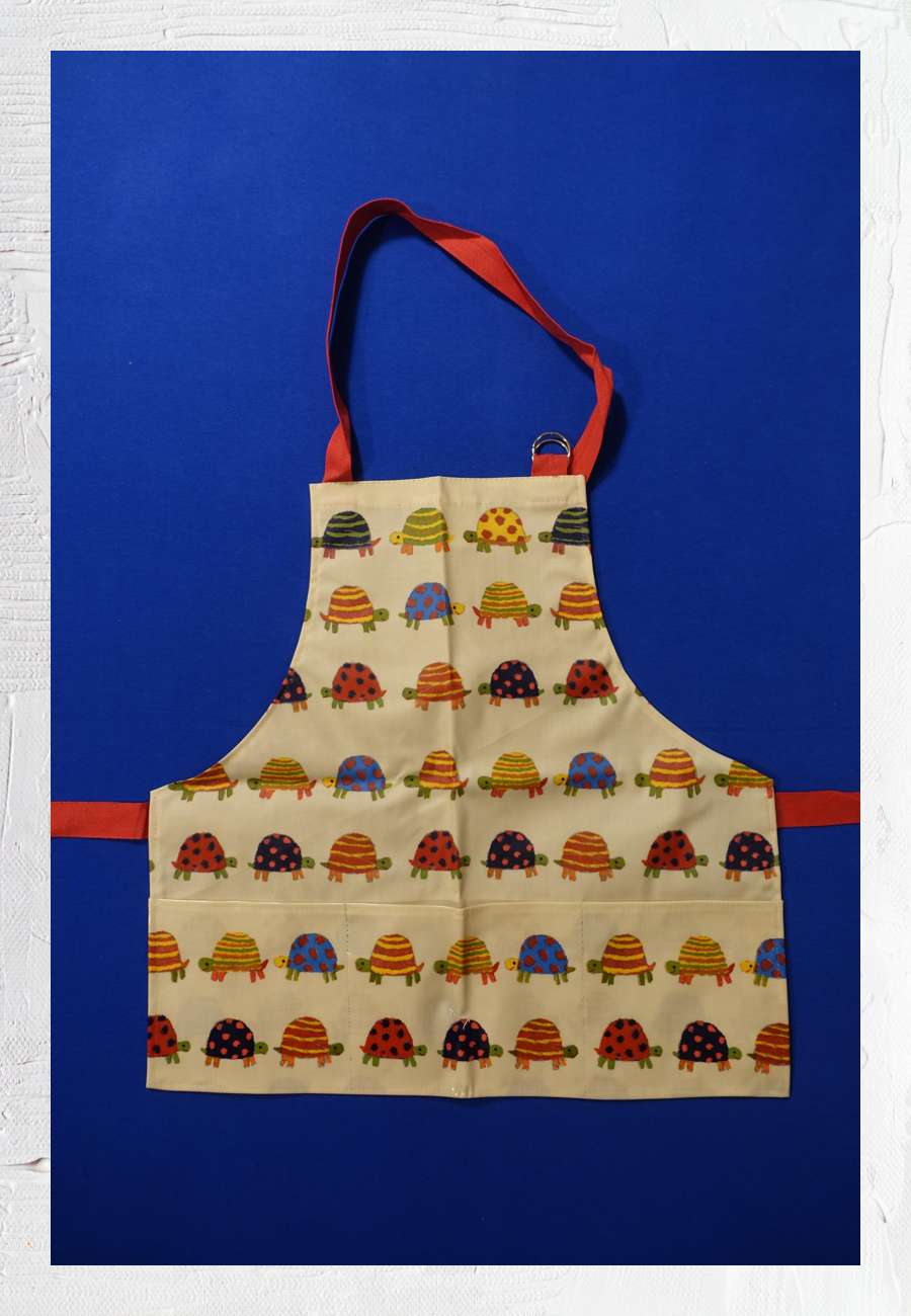 Kinderschürze mit 3 kleinen Taschen, Baumwolle und PVC, Made in China.