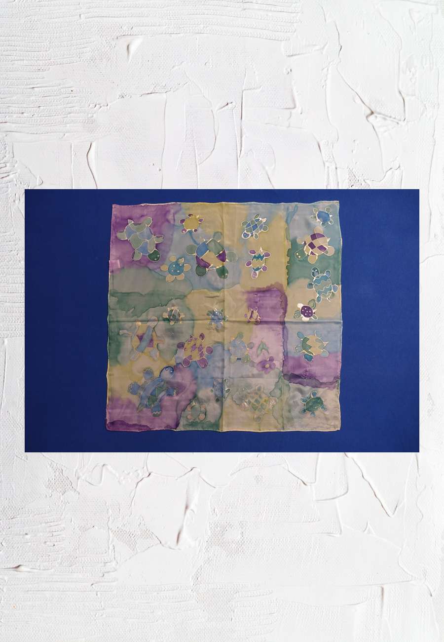 Halstuch, 100 % Seide (Made in China), handbemalte mit 22 verschieden Schildkröten, Unikat, 54 x 54 cm, Alter 12 Jahre.