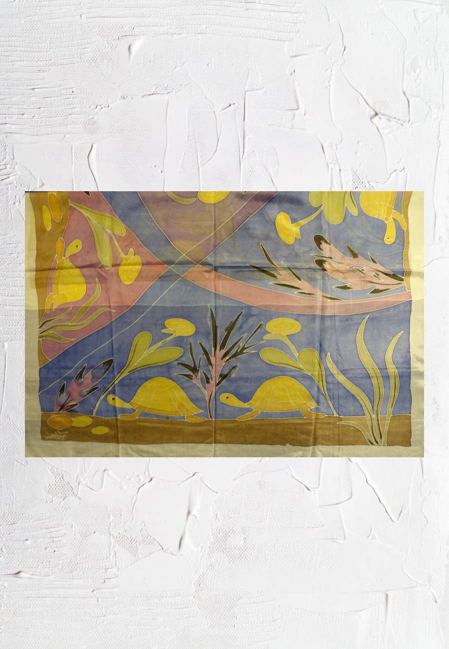 Halstuch (Ausschnitt), Seidenmalerei, sign., 90 x 90 cm.