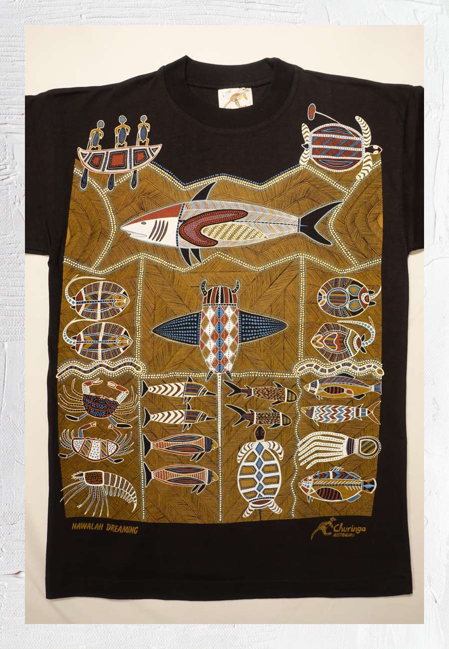 T-Shirt, Aboriginal Art, Design Churinga (Nawalah Dreaming), hergestellt in Australien, 100 % Baumwolle.