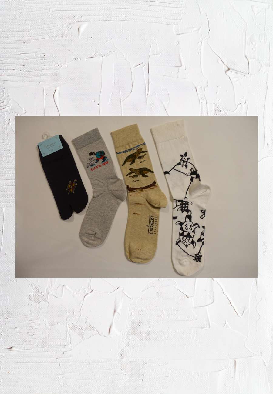 Socken aus Japan, USA, Italien und Deutschland (rechts handbemalt von Tabea).