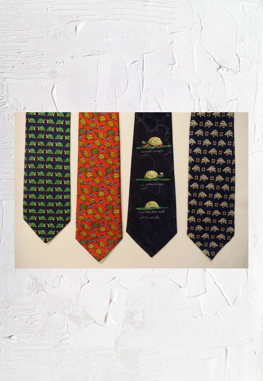 Krawatten, von links: Greg Hunt by Atlas Design, Reine Seide / Reine Seide, ohne weitere Angaben / Bergson, Reine Seide, Made in Korea / Andrew´s Ties, Reine Seide, Made in Italy Milano. Es gibt in der Sammlung ungefähr 10 Krawatten, darunter Designermodelle und Unikate, die bis vor ca. zwanzig Jahren auch getragen wurden. Jetzt war es der Bild-Zeitung v. 14.5.25 die Schlagzeile wert "Warum trug Merz bei der Regierungserklärung eine Schildkröten-Krawatte ?" und fragte beim Regierungssprecher nach, was der Kanzler mit dem Design sagen wollte. Der gesamte Text ist unter "Suche : Kanzler" zu finden.