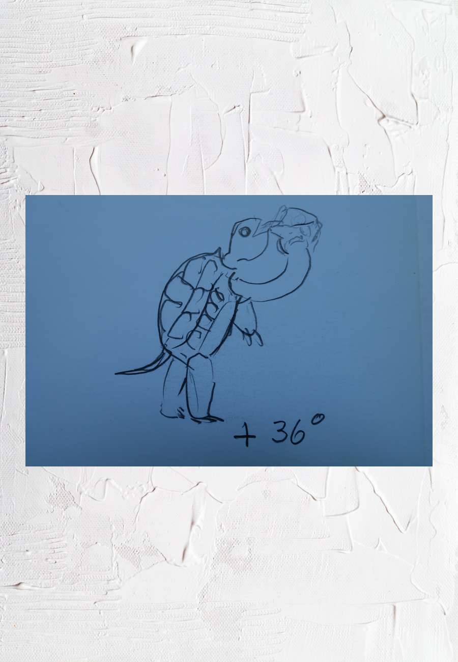 Kleine Bleistift-Zeichnung, 10,5 x 9 cm, Motiv: bei 36 ° Celsius stemmt auch die Schildkröte gern eine kühle Maß (ein Geschenk des humorvollen Künstlers, mit rückseitigem Gruß).