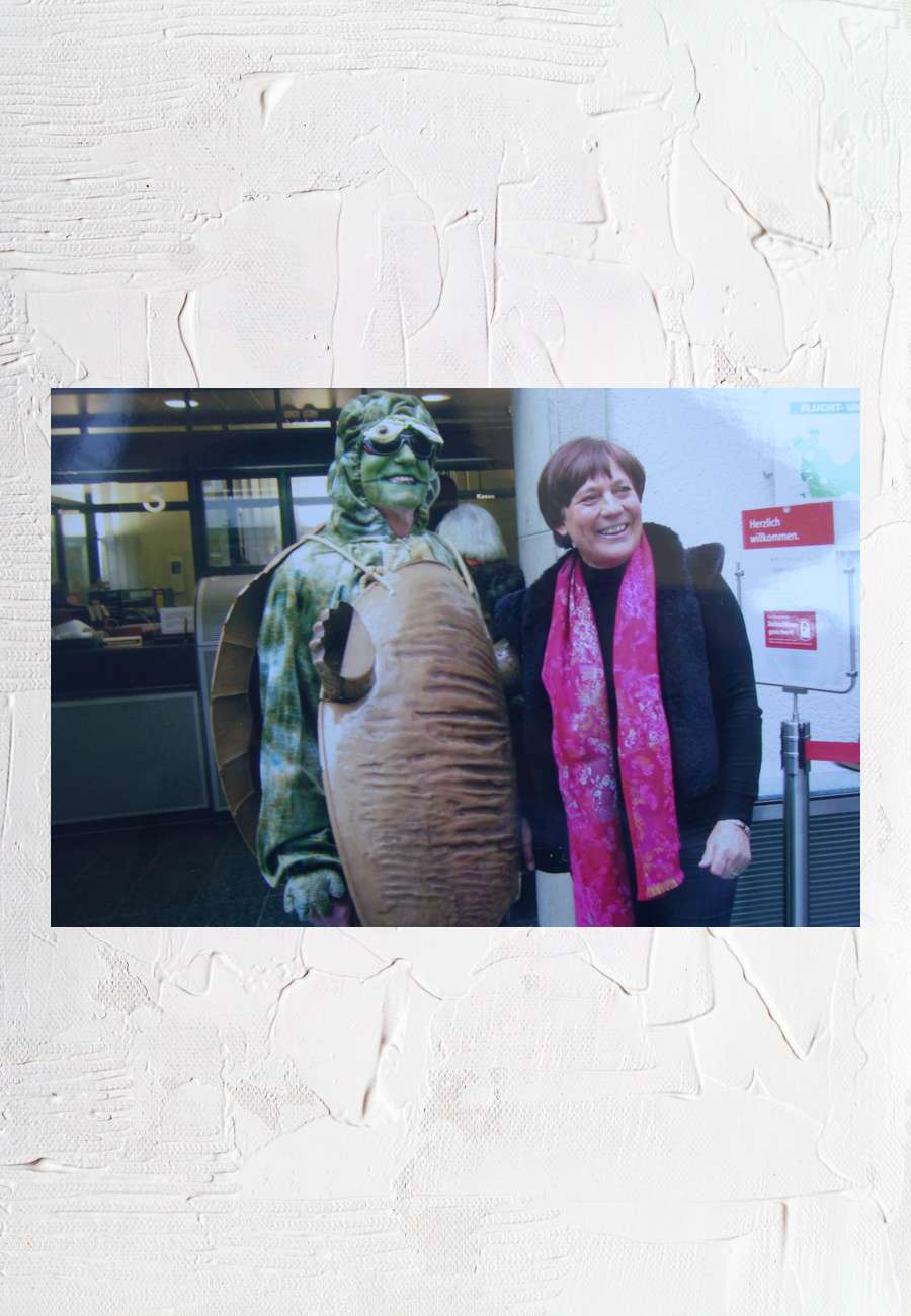 Am Faschings-Dienstag 2012 bat mich Rosi Mittermaier (volkstümlicher Beiname: Gold-Rosi) in der Stadtsparkasse München um ein gemeinsames Foto (aufgenommen von ihrem Mann), weil ihr die Verkleidung gut gefiel. Einen Hinweis dazu gibt es auch im Münchner Merkur "Der Herr der Schildkröten" ("Suche : Rosi").