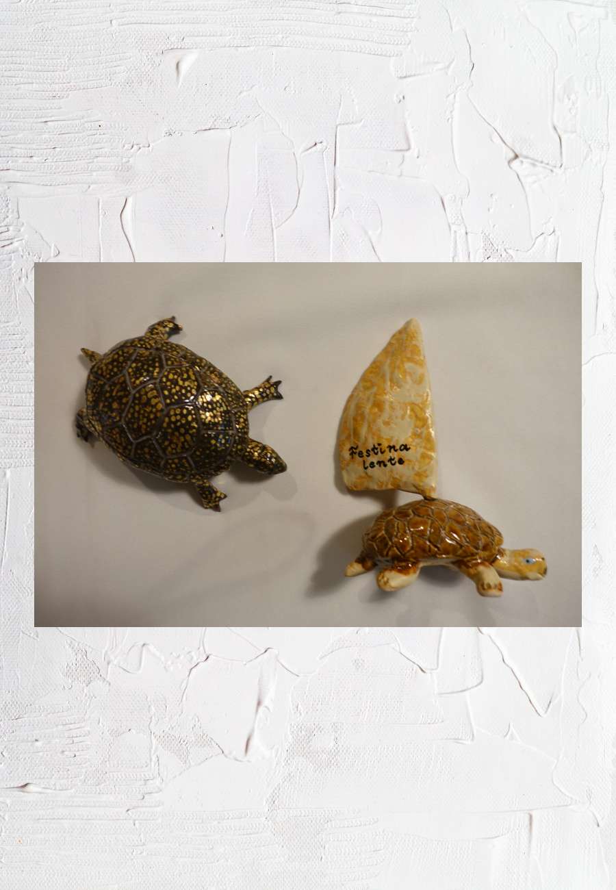 Gemeinschaftsarbeit nach meinen Vorlagen, getöpfert von G. F., bemalt von K. L., "Europäische Sumpfschildkröte" (mit Goldglasur),