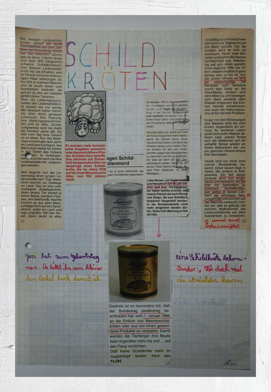 Collage aus diversen, für mich gesammelten Ausschnitten (1986, oft aus der Zeitschrift "Floh") und um einen Witz ergänzt, insgesamt 4 Seiten, je DIN A 4,