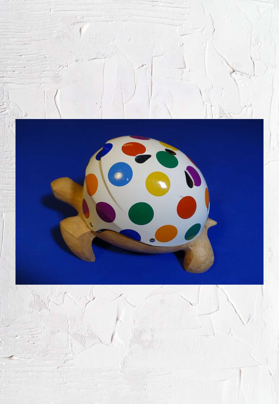 bildhauerisch passgenau umgesetzt (Kastanienholz, naturbelassen), sign., Länge 35 cm, Höhe 22 cm (siehe auch ihr Objekt Schuhlöffel). Nach Abschluß der Berufsfachschule für Holzschnitzerei in Berchtesgaden besuchte sie die Hochschule für Bildende Künste in Dresden. Den Panzer bildet der Fahrradhelm für Kinder, Modell von Nutcase, Portland, USA, made in China. Als der Helm zwei Enkelkindern zu klein wurde, ist das schöne Stück an mich "zurück gewandert".