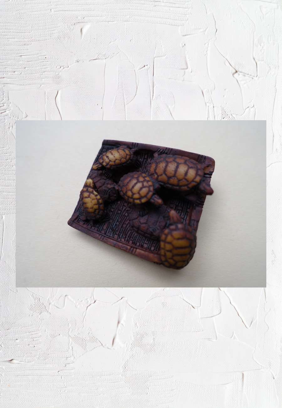 Diese aus Buchsbaum geschnitzten Schildkrötchen sitzen in einem Korb, Größe 4,5 x 3,8 cm.