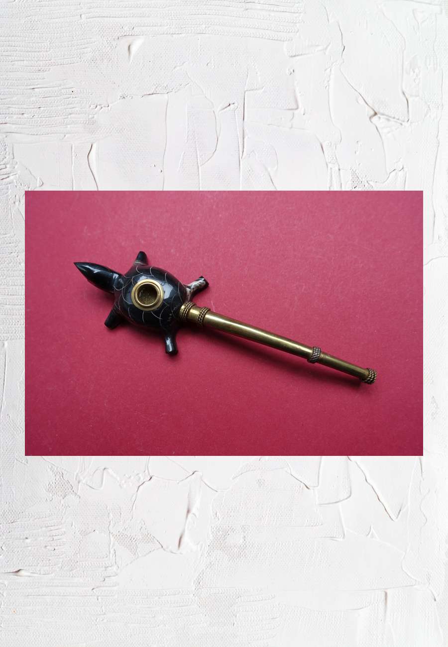 Pfeife aus Speckstein und Messing, Größe 16 cm.