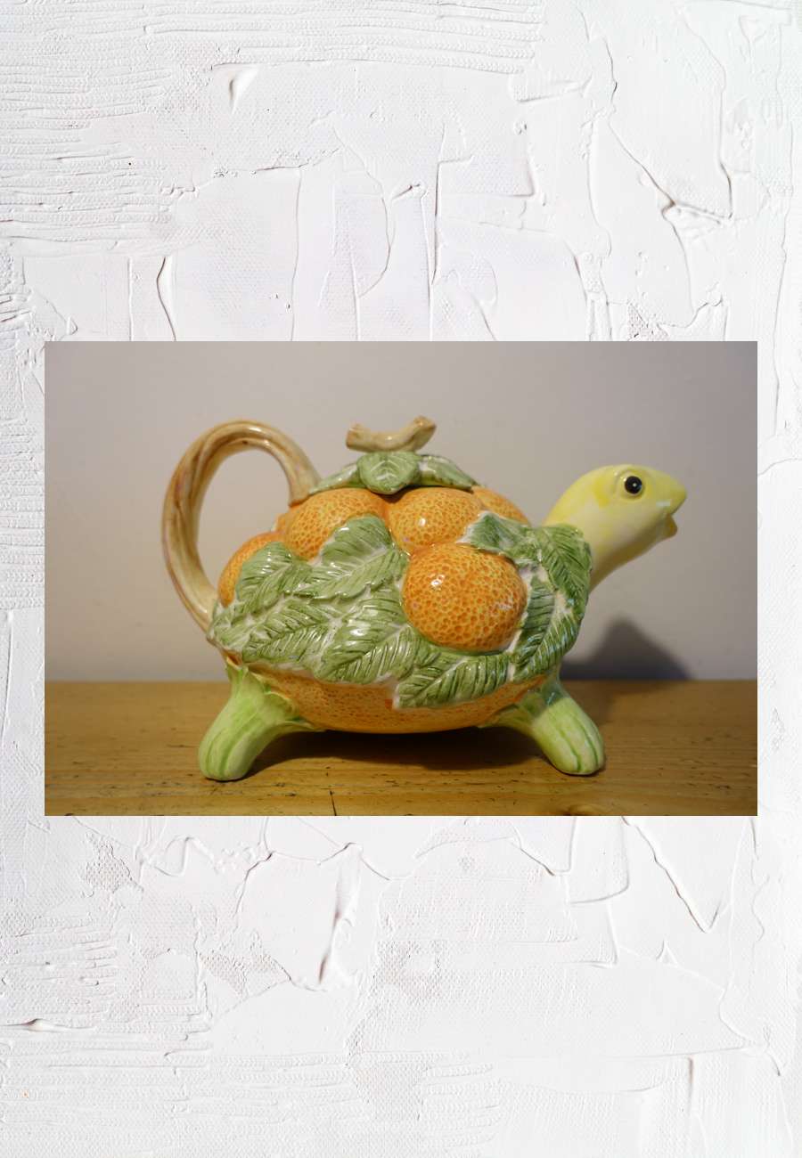 Kugelige Teekanne aus Japan, handbemalt, im Boden eingeprägt : FF 1986, Fassungsvolumen 1,5 Liter, Größe ca. 26 cm.
