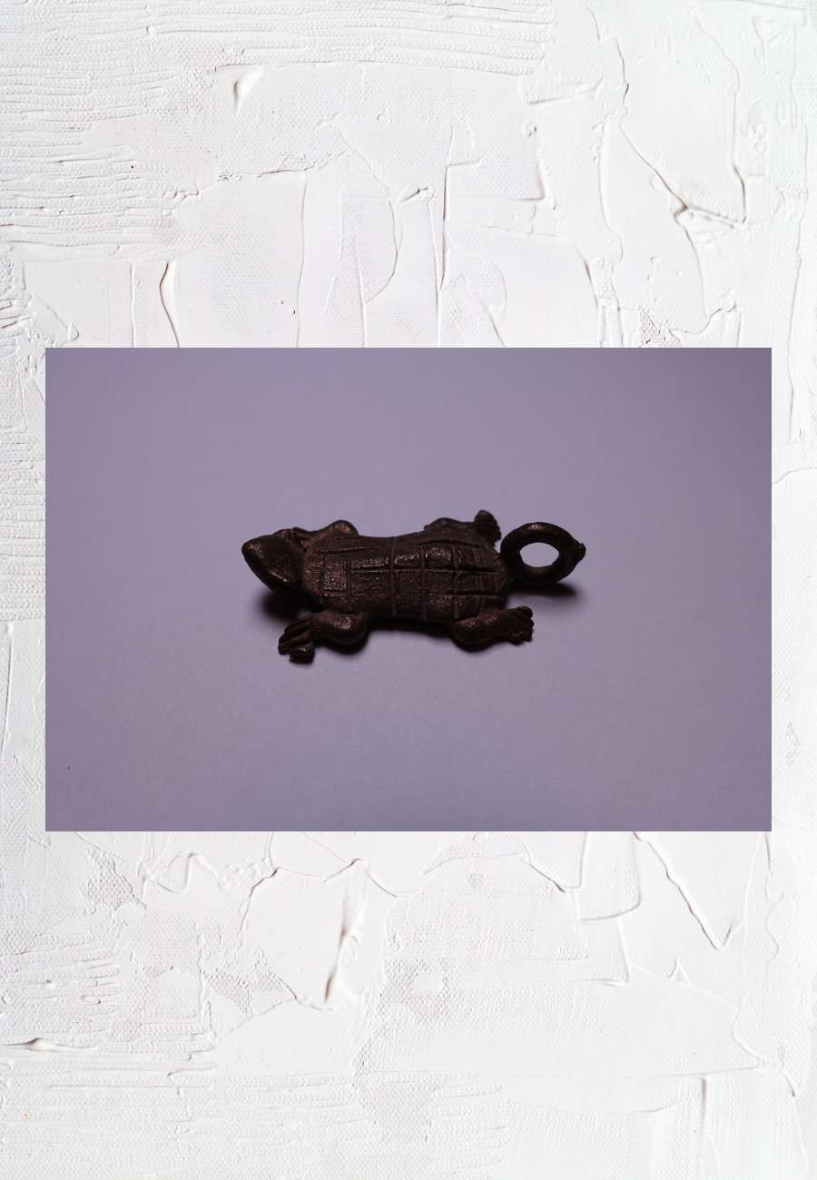 Kleiner Bronzeguss aus Afrika, als Anhänger oder schützender/glückbringender Gegenstand zu tragen, Größe 3,7 cm.
