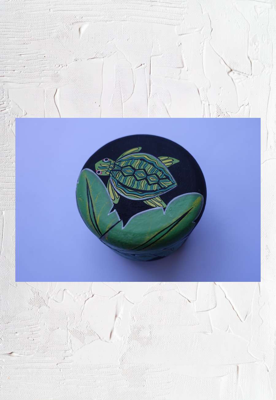 Dose, handbemaltes Unikat, Durchmesser 9 cm und 6,5 cm hoch.