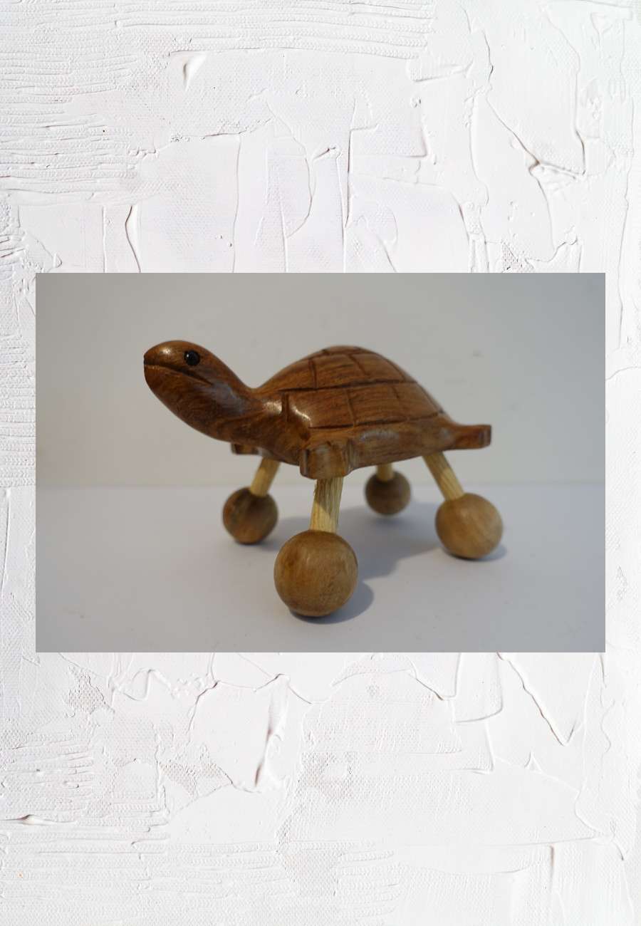 Diese Schildkröte, aus drei Holzarten zusammengesetzt, liegt gut in der Hand und kann zur Massage verwendet werden, Größe12 cm.