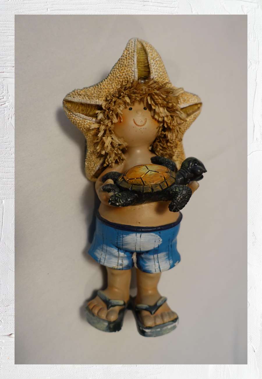 Keramikguss, bemalt, Bast, Seestern, Größe 17,5 cm. Wie zu sehen gibt es auch niedlichen Kitsch.