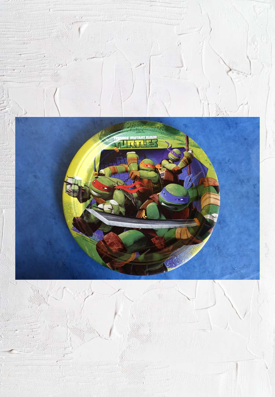 Pappteller, Motiv: Teenage Mutant Ninja Turtles, eines von vielen Merchandising-Produkten zu diesem Thema.