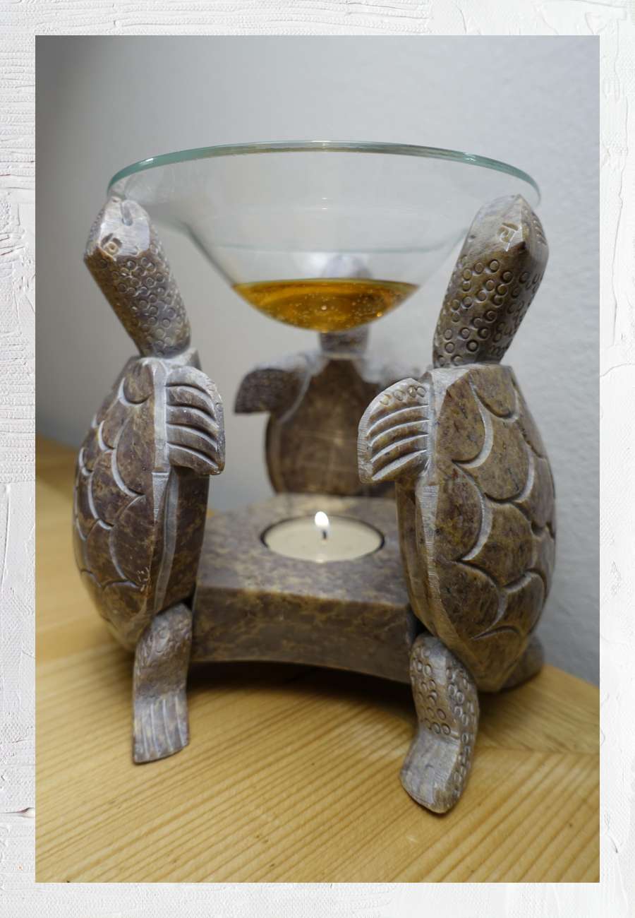 Duftlampe, Naturstein, Glasschälchen, Höhe 14 cm, made in India.