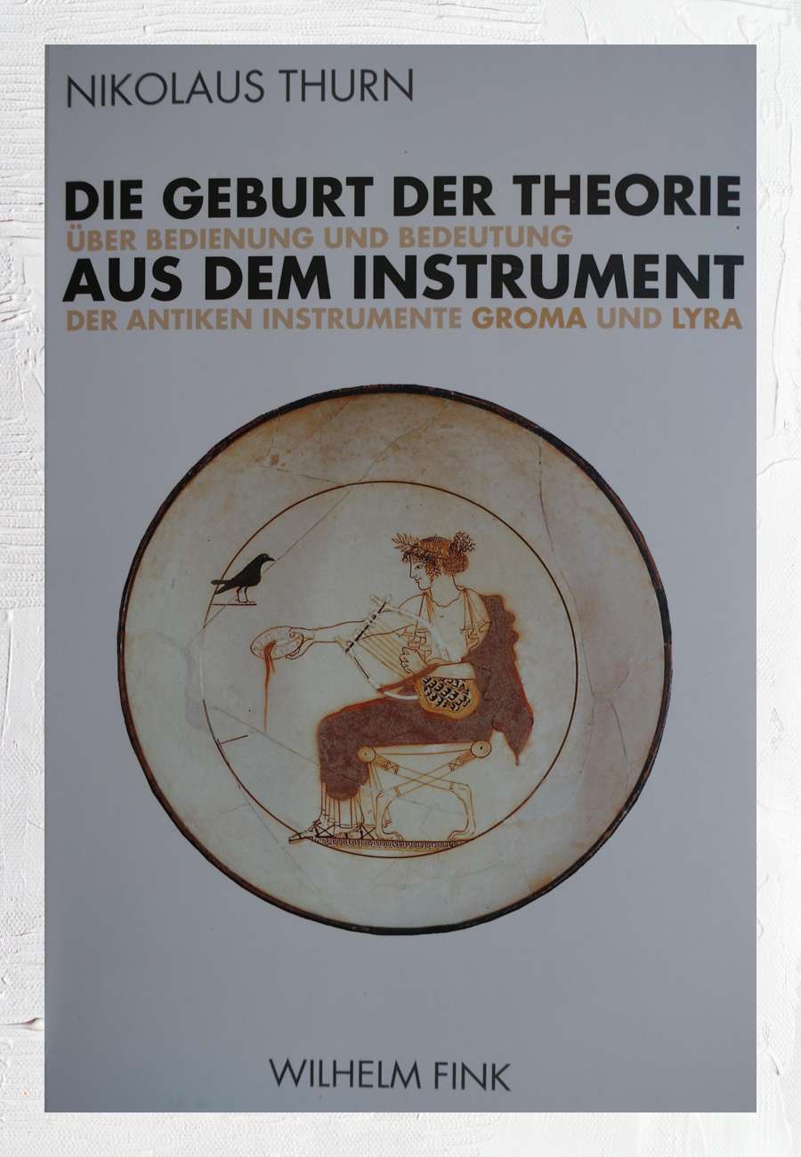 Eines von 2 Fachbüchern zum Thema antiker Musikinstrumente. Titel-Motiv: Kylix (Trinkgefäß, s. meine Replik) und Apollon mit Schildkröten-Lyra. Als Gegenstück wird z.B. auf einer griechischen Vase (5. Jhd. v. Chr.) Orpheus mit einer derartigen Lyra dargestellt. Die Lyra wurde ursprünglich Chelys (= Schildkröte) genannt, und zwar wegen des Schildkrötenpanzers, der als Resonanzkörper verwendet wurde. Der phantasievollen Überlieferung nach (u.a. von Homer) wurde die erste Lyra von Hermes geschaffen. Zur Wandlung des Panzers passt das schöne Zitat von Sappho (ca. 630 - 570 v. Chr.) "Nun erhebe deine Stimme, du meine göttliche Schildkröte". Sie gilt als die bedeutendste Lyrikerin der Antike und wird von Künstlern bis heute wiederholt mit diesem Instrument dargestellt. Neuere Ergebnisse bestätigen, dass die Schildpatt-Leier als Begleitinstrument zur menschlichen Stimme verwendet wurde.