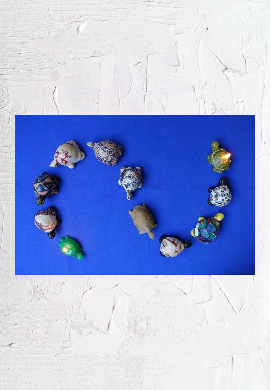 Kerzen, u.a. aus Bienenwachs, handgemacht, überwiegend aus Swasiland (seit 2018 Eswatini). Teilweise sind Motive (u.a. Giraffen, Schmetterlinge, Höhlenmalerei) geschickt eingearbeitet, Größe 8 - 9 cm.
