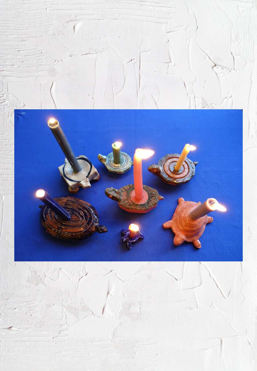 Kerzenhalter, selbstgetöpfert und glasiert, sign.