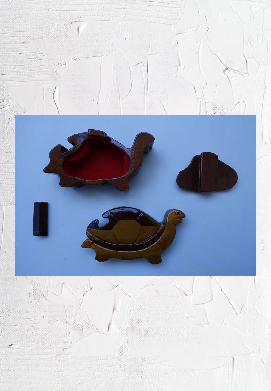 Schmuckdose aus zwei Holzarten, in 4 Teilen raffiniert und verschließbar zusammengesetzt, Größe 13 cm.