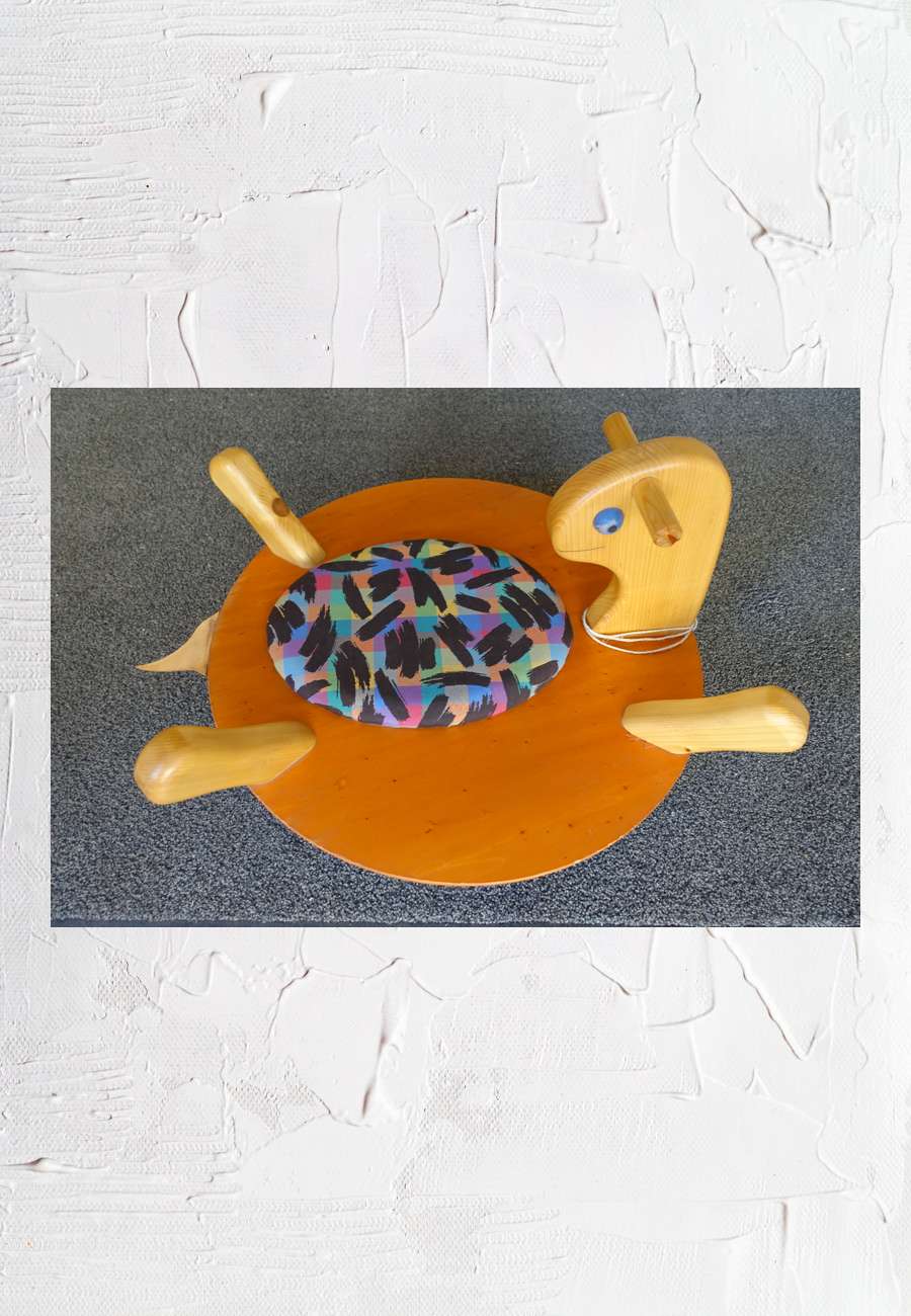 Kinderwippe, der Sitz mit Stoff bezogen, die Funktion ähnelt einem Schaukelpferd, Größe 70 cm.