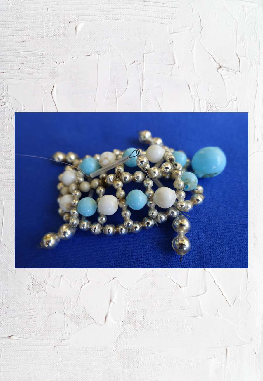 Verschiedene Glasperlen, an dünnem Draht aufgefädelt, aufhängbar, ca. 9cm.