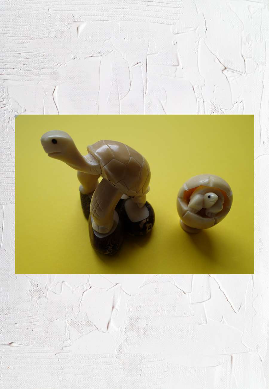 Pflanzliches Elfenbein, geschnitzt aus Tagua-Nüssen. Die Nuss ist der Samen einer tropischen Palme, erworben auf der Insel Santa Cruz.