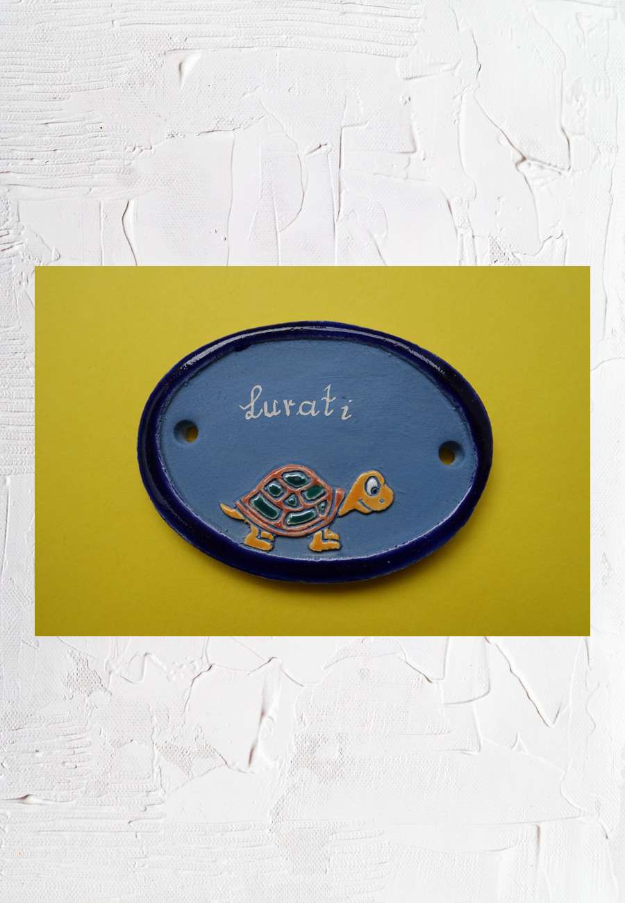 Kleine Auftragsarbeit, Türschild, getöpfert und bemalt, Größe 10 cm.