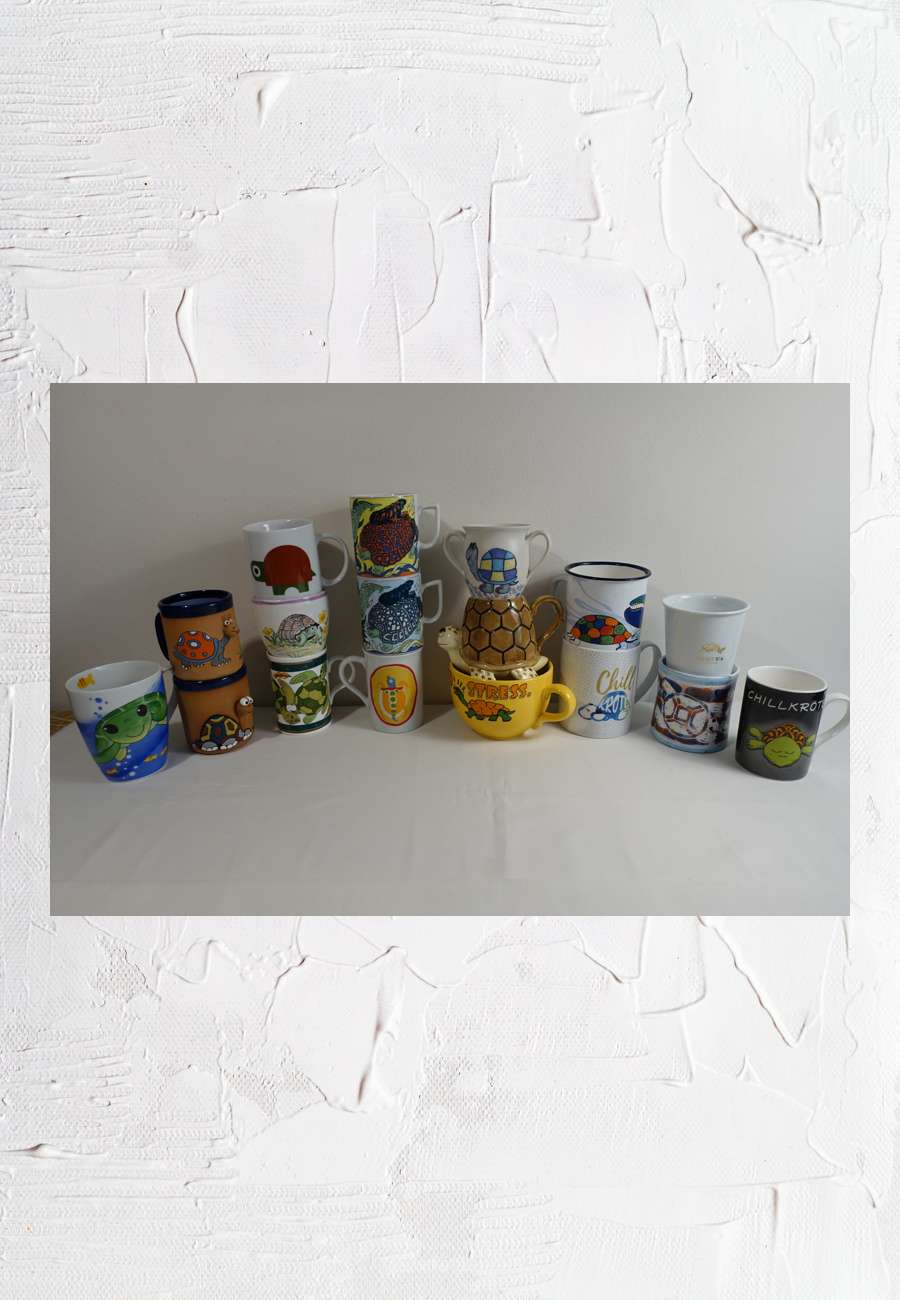 Becher aus verschiedenen Ländern, z.T. für Kinder, halbplastisch und handbemalt.