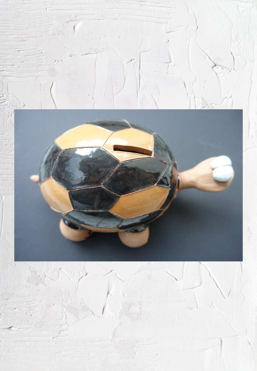 Spardose, handgetöpfert und teilglasiert, Größe 26 cm.
