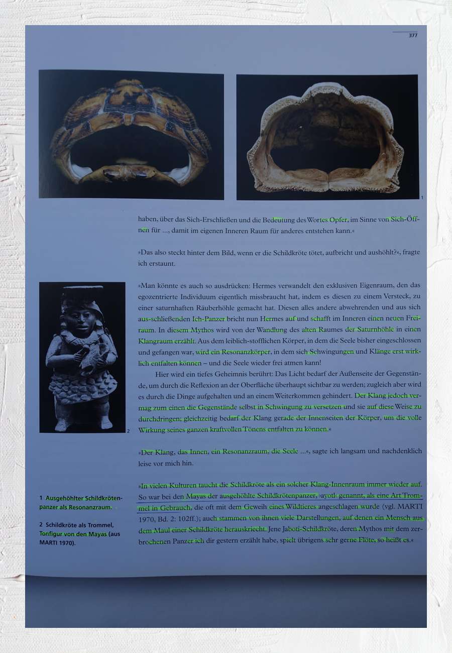 Ausgezeichnetes Buch des Künstlers und Wissenschaftlers "Das Geheimnis der Schildkröte", Ausschnitt (Seite 377 und folgende). Es geht um den Schildkrötenpanzer als Klangraum