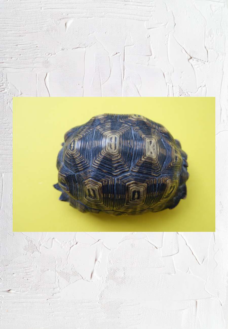 Kompletter Panzer einer Sternschildkröte (Geochelone elegans) aus Madagaskar. Das gelbbeige Plastron trägt schöne Strahlen, davon wird auch die Bezeichnung Strahlenschildkröte abgeleitet. Größe ca. 13 cm.