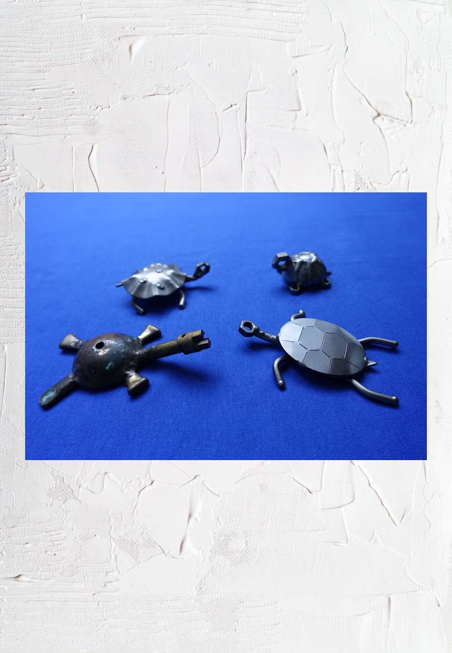 Kleinere Objekte, aus diversen Metallteilen handwerklich zusammengeschweißt.