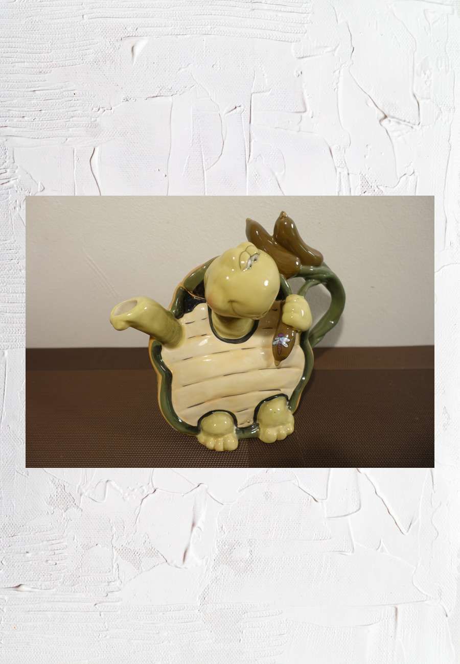 Teekanne, Vintage Art (Blue Sky, California), Design: Heather Goldmine, Lantzville (Canada), handbemalt, sign., Made in China, 25 cm breit.