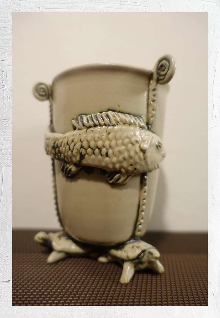 Prunkbecher, auf drei Schildkröten stehend, Unikat, auf der Töpferscheibe gedreht und dann skulptural gestaltet, Ton aus dem Westerwald, Größe 12 cm.