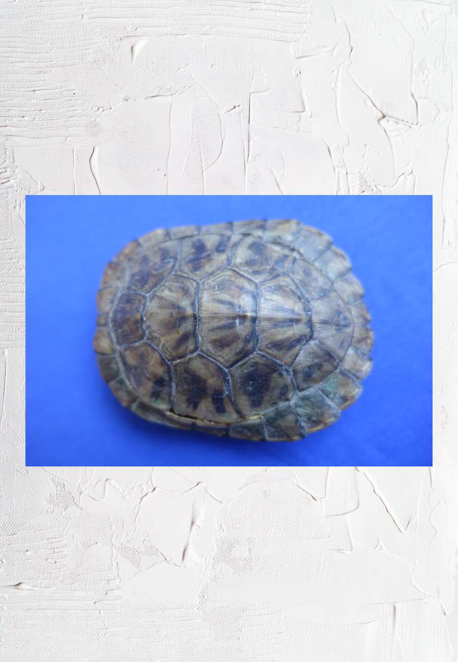 Panzer einer Kubanischen Schmuckschildkröte (Trachemys decussata), Key West, lebt im Süßwasser, gefunden auf der Mineralienmesse in München, Größe ca. 10,5 cm.