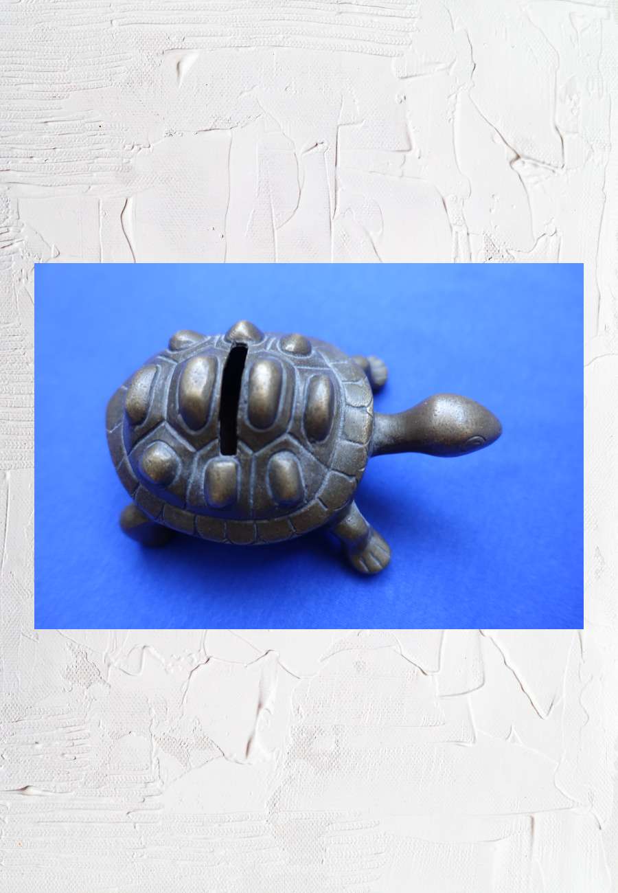 Spardose, Bronze, gegossen, von unten mit 2 Schrauben zu öffnen, Größe 11 cm.