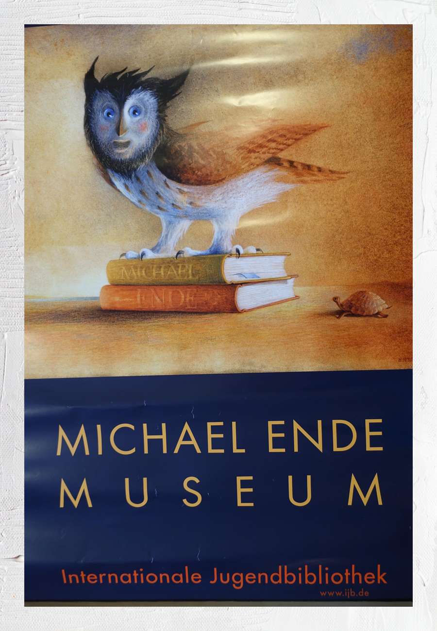 Plakat zur Eröffnung des "Michael Ende Museum" (1998), in der Internationalen Jugendbibliothek, München, Format 70 x 50 cm. Zusätzlich gibt es eine Doppelkarte und einen Flyer mit gleichem Motiv. Außerdem ist sie dort inzwischen selbst mit dem "Binette-Schroeder-Kabinett" prominent vertreten; s. auch ihre Illustration des Buches "Die Schattennähmaschine" von Michael Ende.