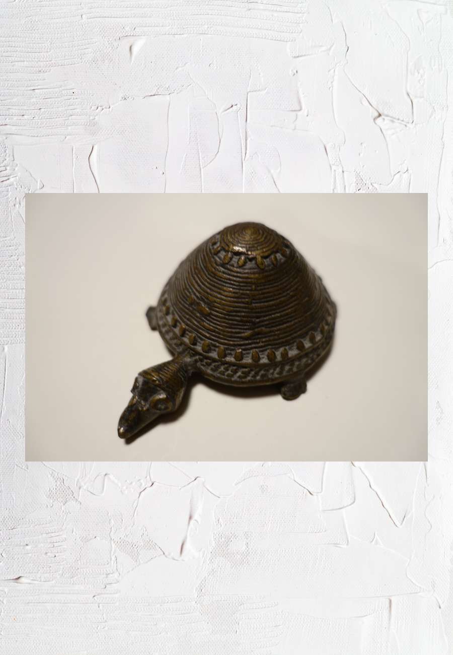 Bronzeguss, im Boden mit durchbrochenen Kringeln, Größe 10,7 cm.
