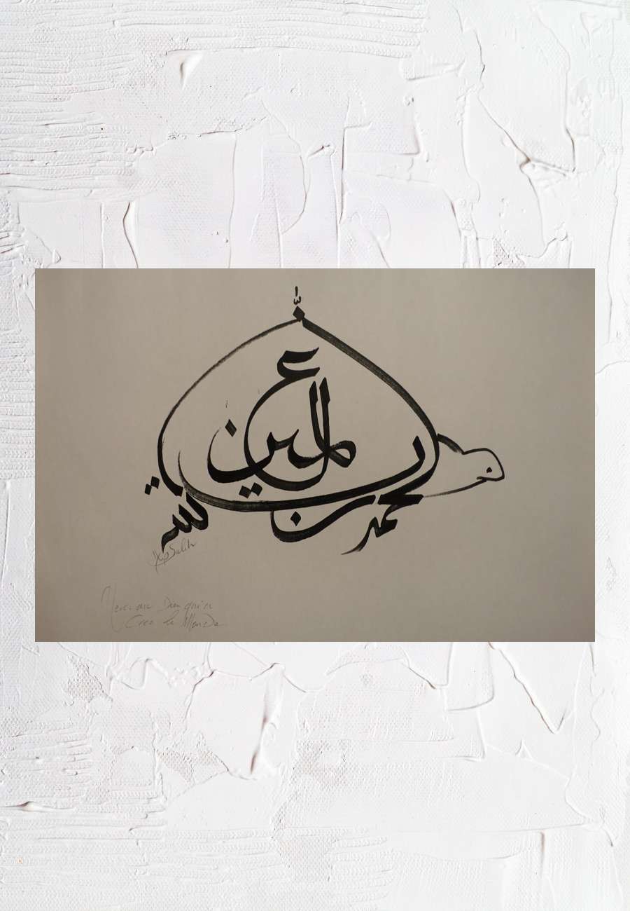 Arabische Kalligraphie, erstaunlich sind Konzeption und Dynamik in der Darstellung, Format 42 x 30 cm.