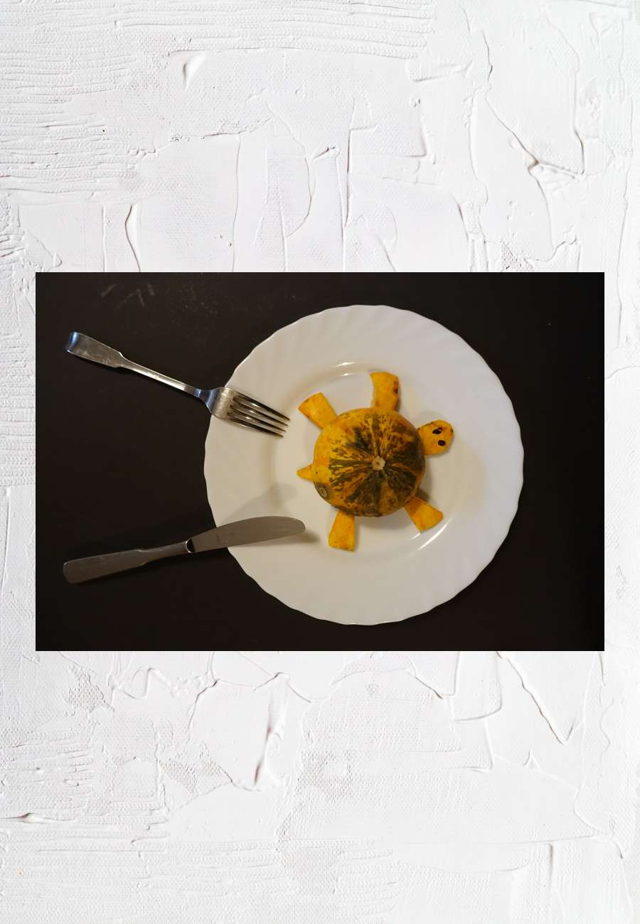 Vergängliche Installation, inspiriert duch einen kleineren Kürbis.