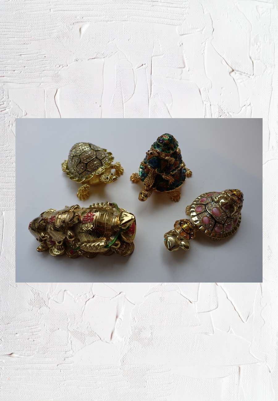 Glitzerkröten mit Strass-Steinchen, zum Teil sogar im "Dreierpack", außerdem enthalten drei davon emaillierte Döschen (z.B für Medikamente) mit Magnetverschluß, das Exemplar unten links