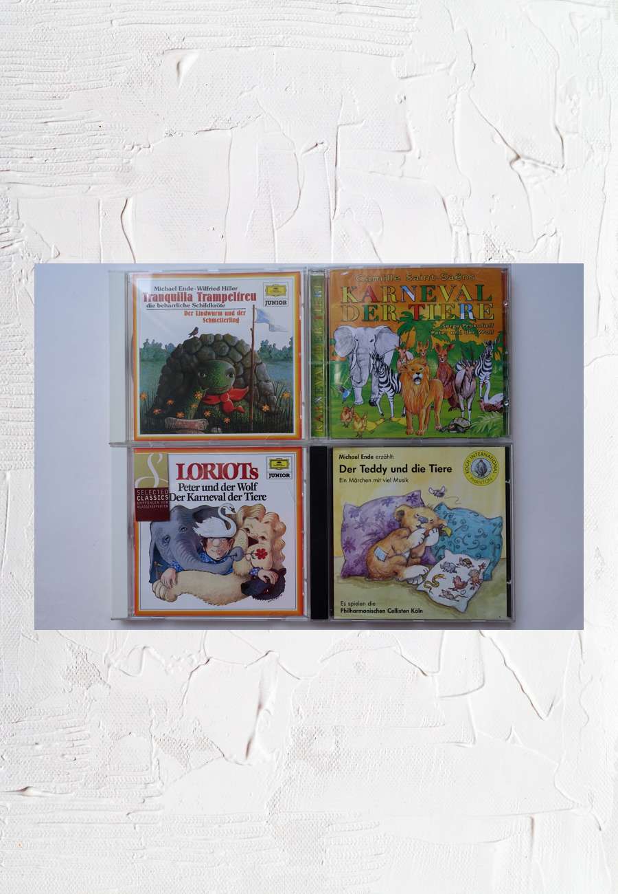 Geschichten und Musik für Kinder. Für "Tranquilla Trampeltreu" von Michael Ende komponierte Wilfried Hiller einen Schildkröten-Marsch. In "Karneval der Tiere" spielen u.a. Riesenschildkröten eine Rolle, im Text von Loriot bevorzugt der Mehlwurm das Pariser