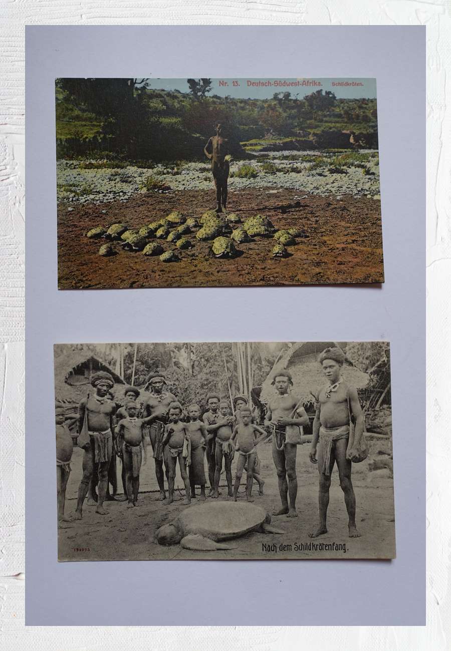 Beide Kolonialkarten sind von ca. 1910, oben aus Deutsch-Südwest-Afrika, unten aus Deutsch-Neu-Guinea.