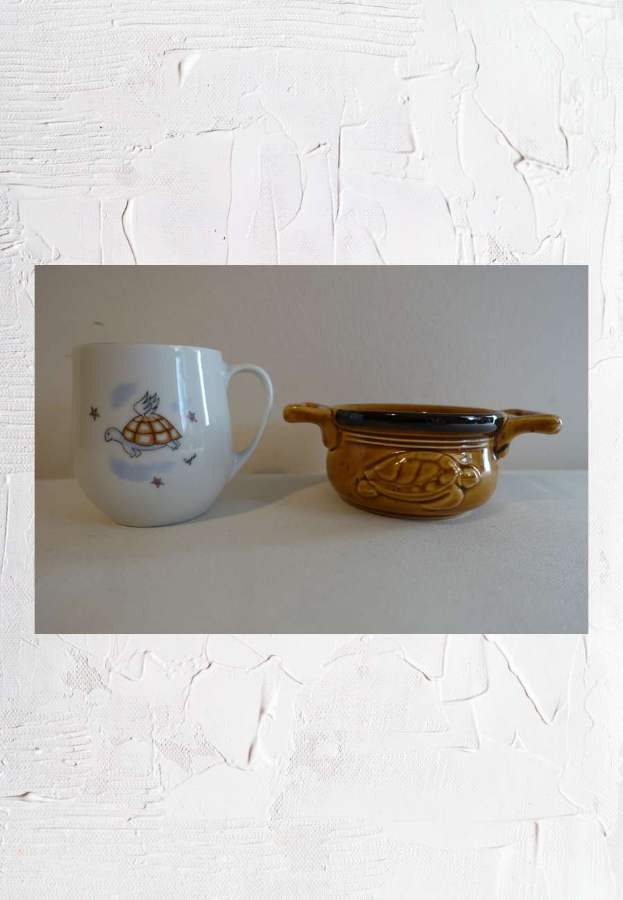 Eigentlich nie benutzt, aber es gibt sie doch: Schildkröten-Suppentassen, links Manufaktur Thomas Germany, rechts unbenannt.