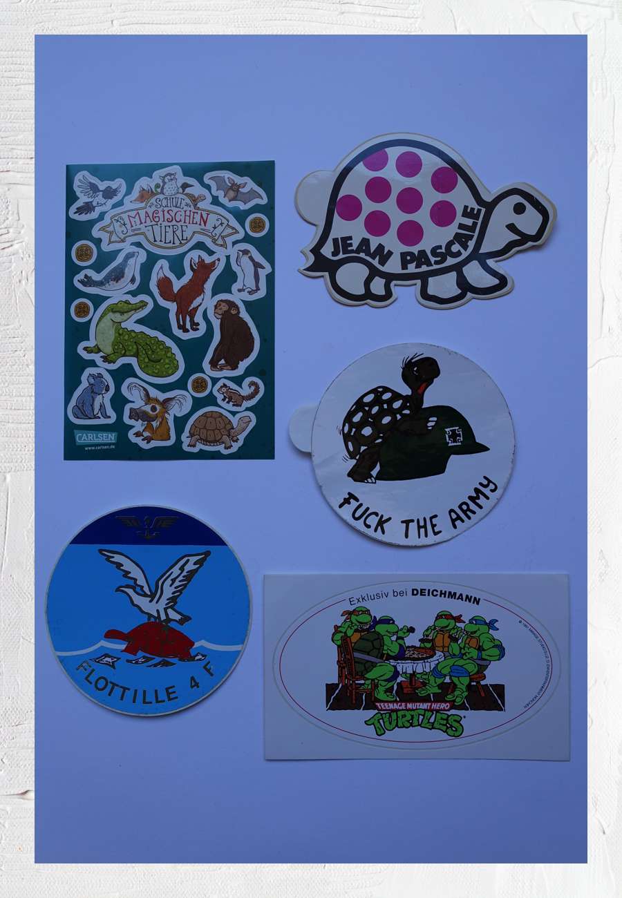 Selbstklebende Sticker aus verschiedenen Ländern dienen teilweise auch der Werbung.